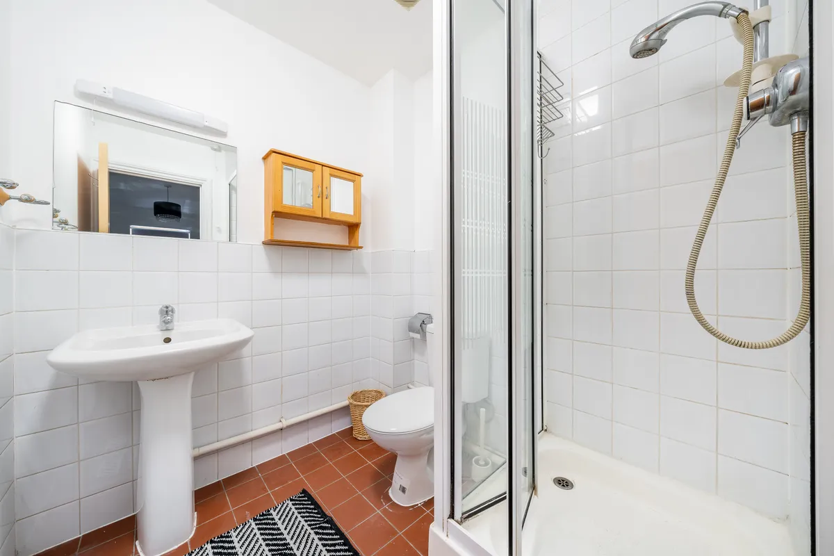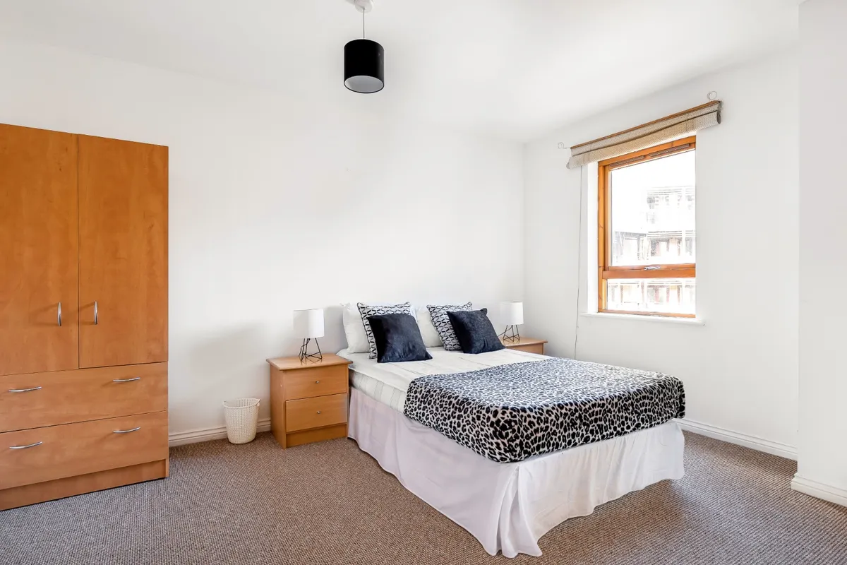 And finally to the top floor, where there are two more furnished double bedrooms, again with double beds and storage space waiting for you. The master bedroom has the added bonus of a smart ensuite with a walk-in shower. We’ll leave you to decide who gets this room!